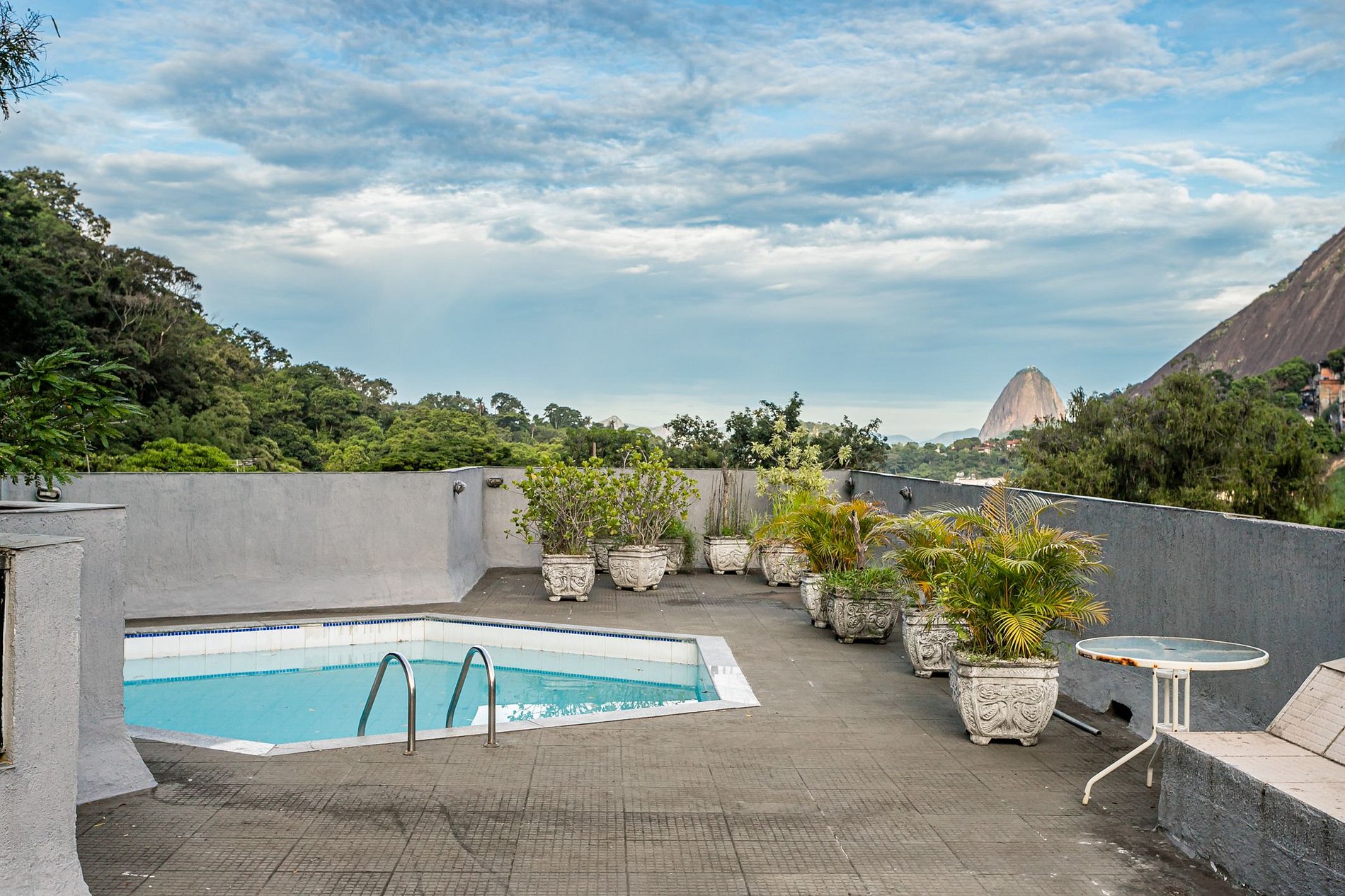 Rua Itamonte, Cosme Velho — Relax at a premium location with stunning views of Sugarloaf Mountain and Christ the Redeemer. Enjoy a mansion with 4 bedrooms, 5 bathrooms, parking for 4 cars, a swimming pool, and a panoramic balcony—ideal for families or groups. Pets are welcome.