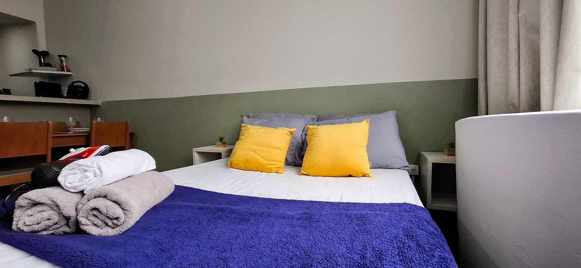 Features you will love: Queen bed and 2 extra mattresses, full kitchen (refrigerator, stove, microwave and utensils), large TV with Wi-Fi, air conditioning and fan, bed linen and bath, iron and hairdryer, wardrobe, hygienic shower, hot water gas, blackout on windows and electronic lock.