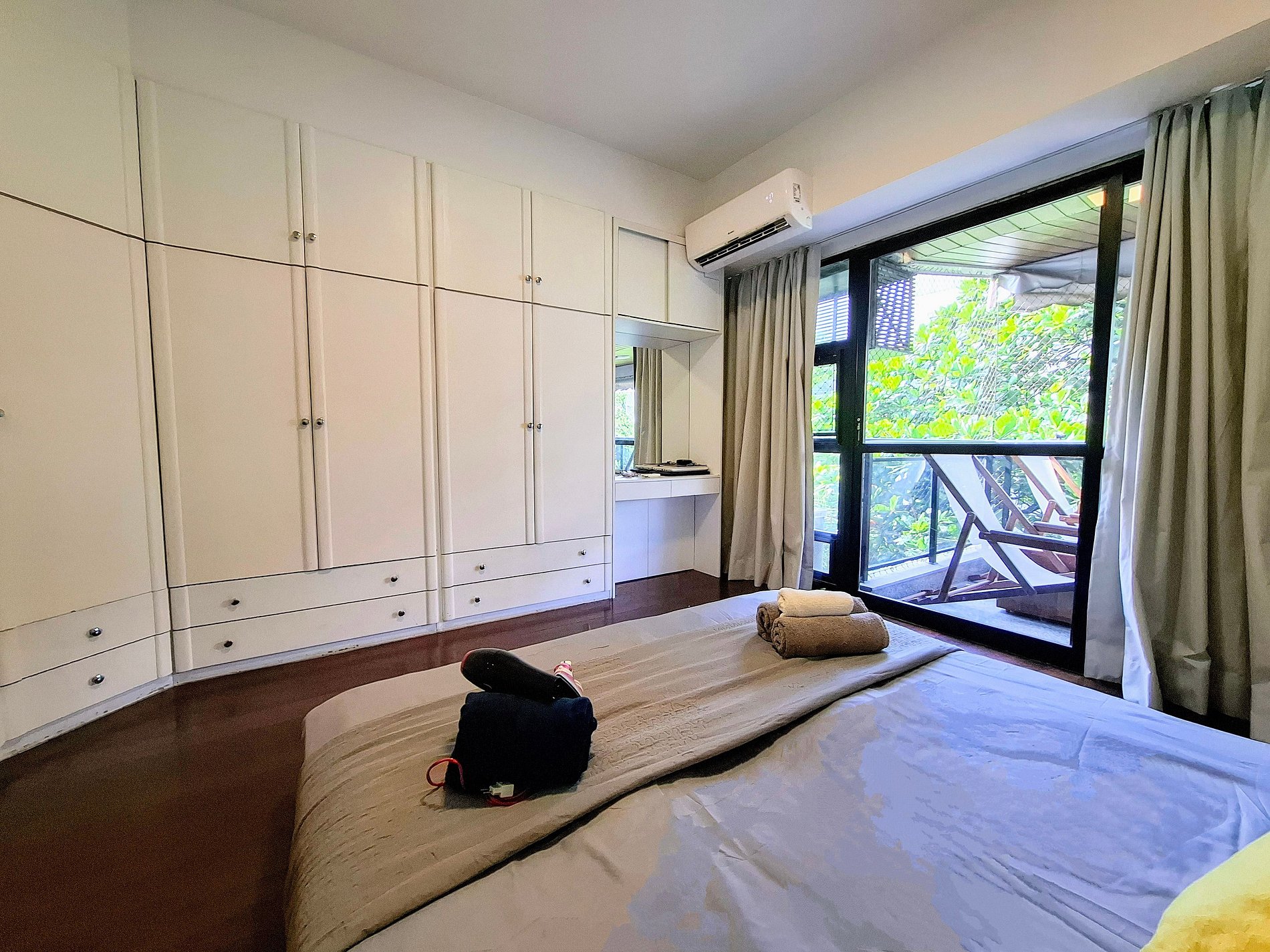 On the 3rd floor, with elevator access (because no one wants to drag suitcases up the stairs!), this apartment has everything to make you feel at home. Three bedrooms: a master suite with a king-size bed worthy of a 5-star hotel, a double room for a good night’s sleep, and a single room for that friend who snores — all with air-conditioning, of course!