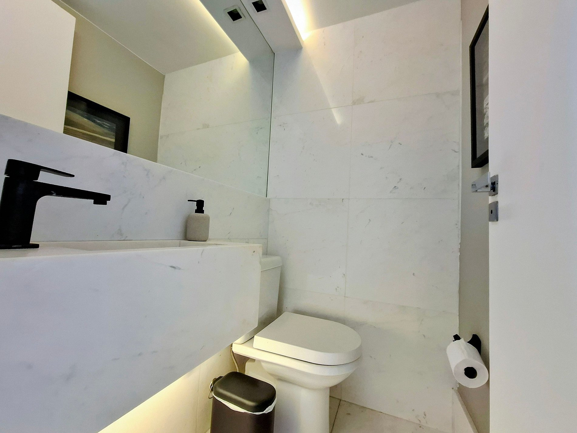 El departamento cuenta con dos dormitorios muy cómodos: uno con cama king y otro con cama doble. Hay dos baños completos y un aseo, lo que garantiza practicidad para todos los huéspedes.