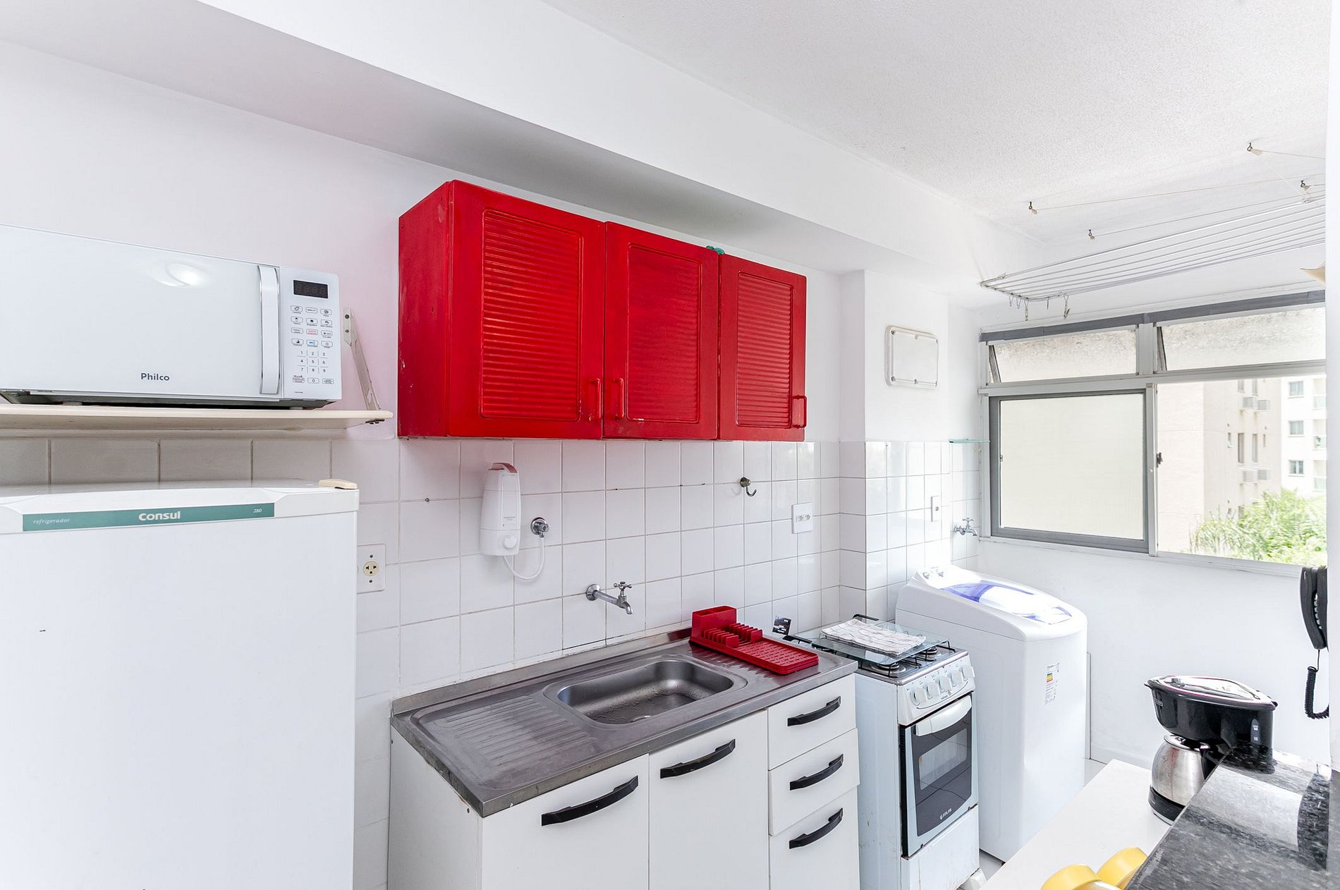 La lavadora ofrece practicidad para estancias más largas.