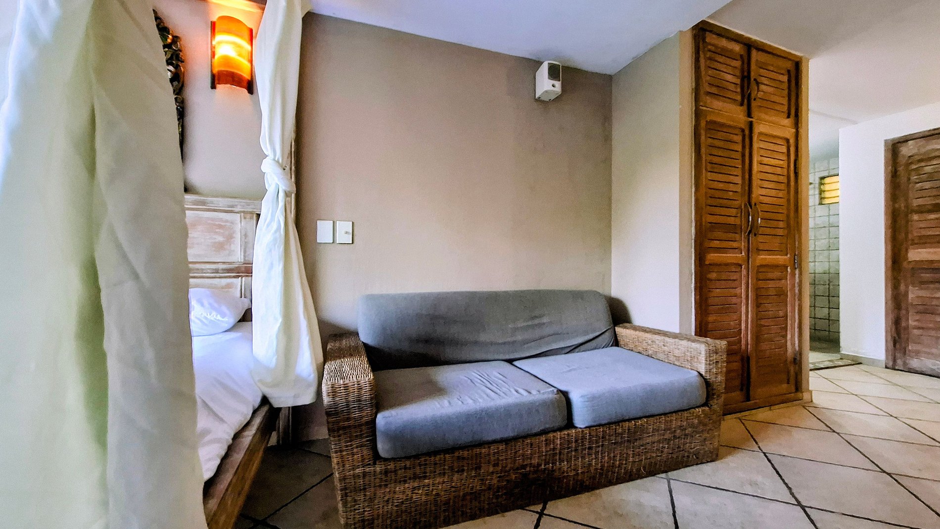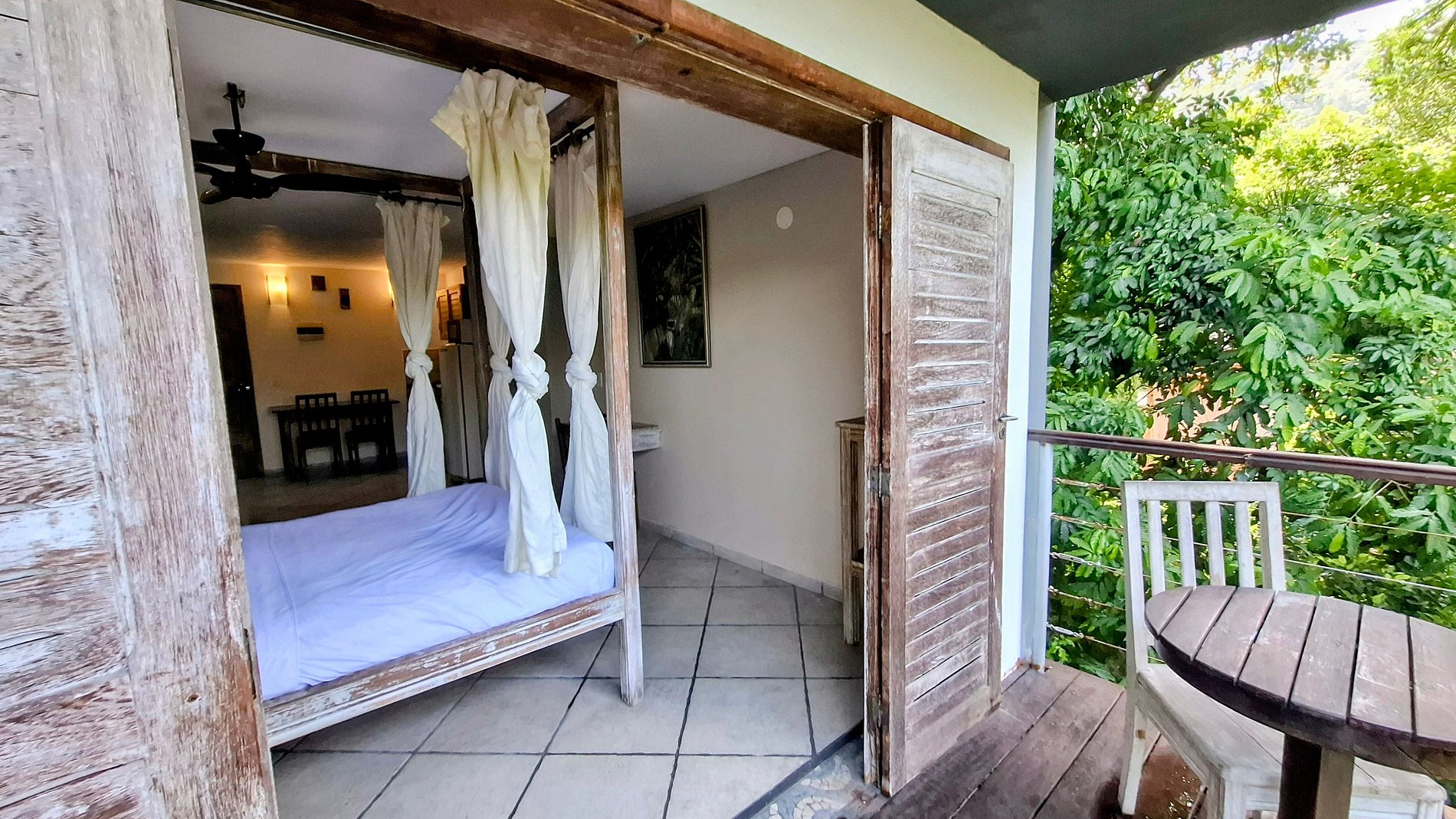 El acceso al balcón amplio es ideal para relajarse, leer o apreciar el ambiente. Ventiladores de techo y portátil ofrecen confort en días más cálidos. Cortinas opacas controlan la luz natural conforme a su preferencia. TV Smart con canales por cable ofrece entretenimiento.