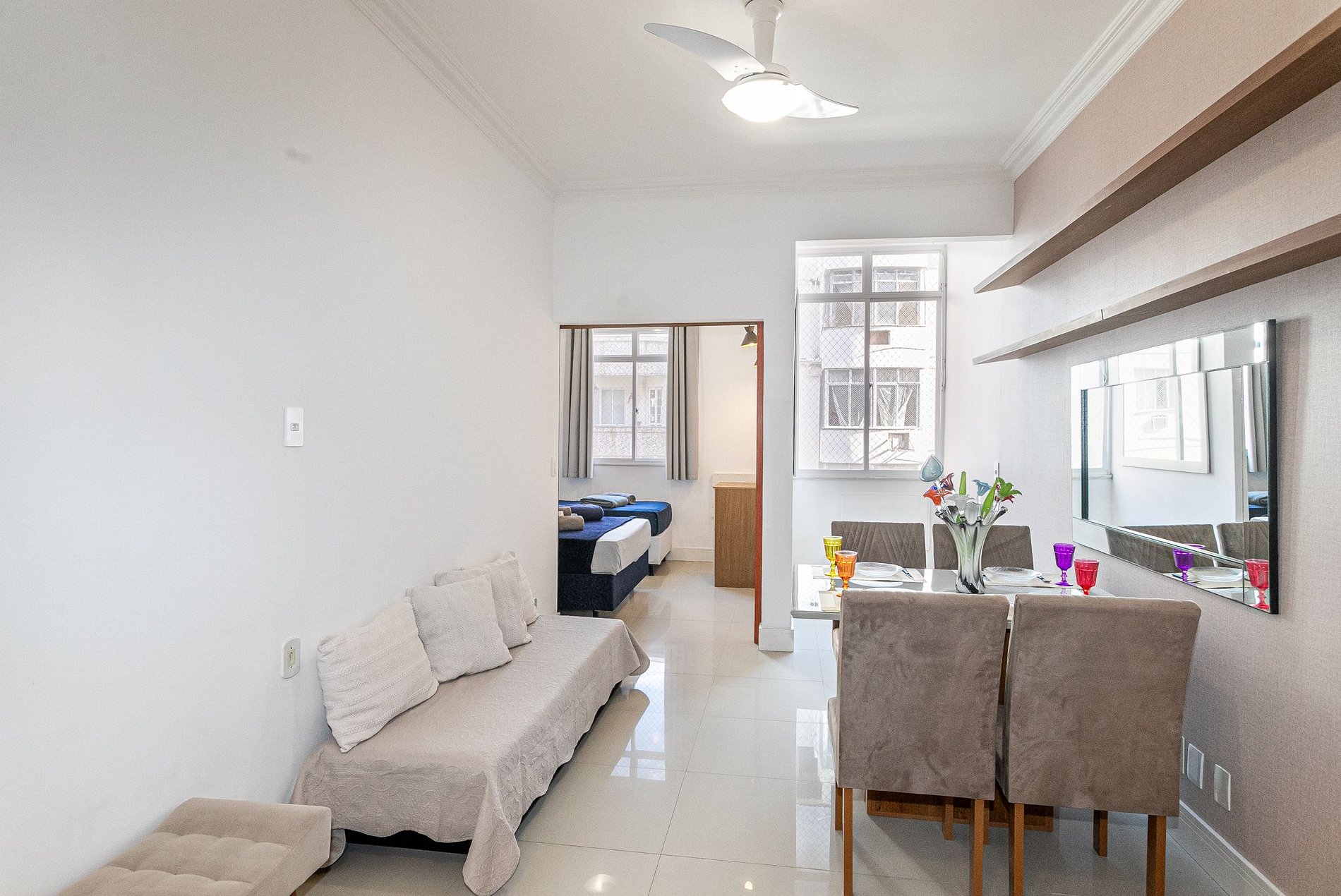 Cuenta con nuestro equipo presencial en Copacabana, los 7 días de la semana, de 9h a 19h. Cambio semanal de sábanas y toallas, cuna y sillas de playa gratis. ¿Viaje de trabajo? Emitimos comprobante/factura.