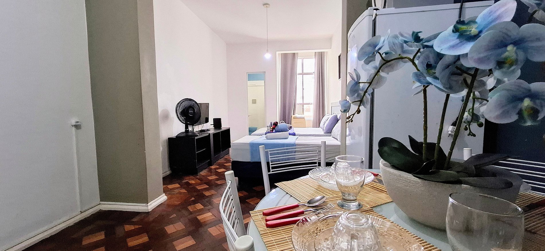 Discover the magic of Copacabana just a few minutes from the most famous beach in Brazil! Our complete apartment awaits you with air conditioning, equipped kitchen and a comfortable room for up to 3 people, plus Wi-Fi.