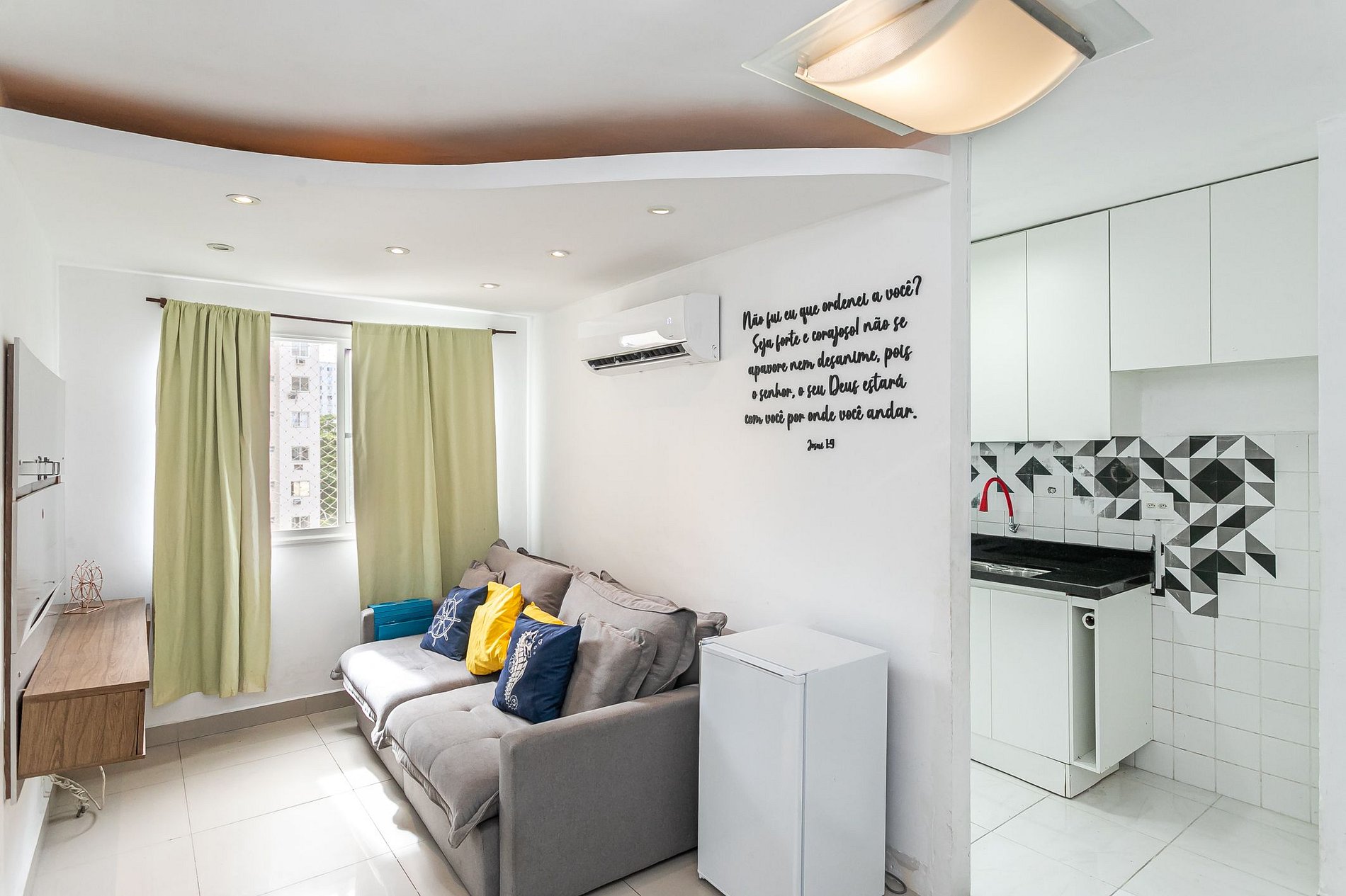 Y la conveniencia? Ah, es total! Hospitales, varias opciones de transporte (autobús, metro, parada de taxis, bicicletas del Itaú), comercios de todo tipo y servicios están a su alcance en el vibrante barrio de Copacabana.