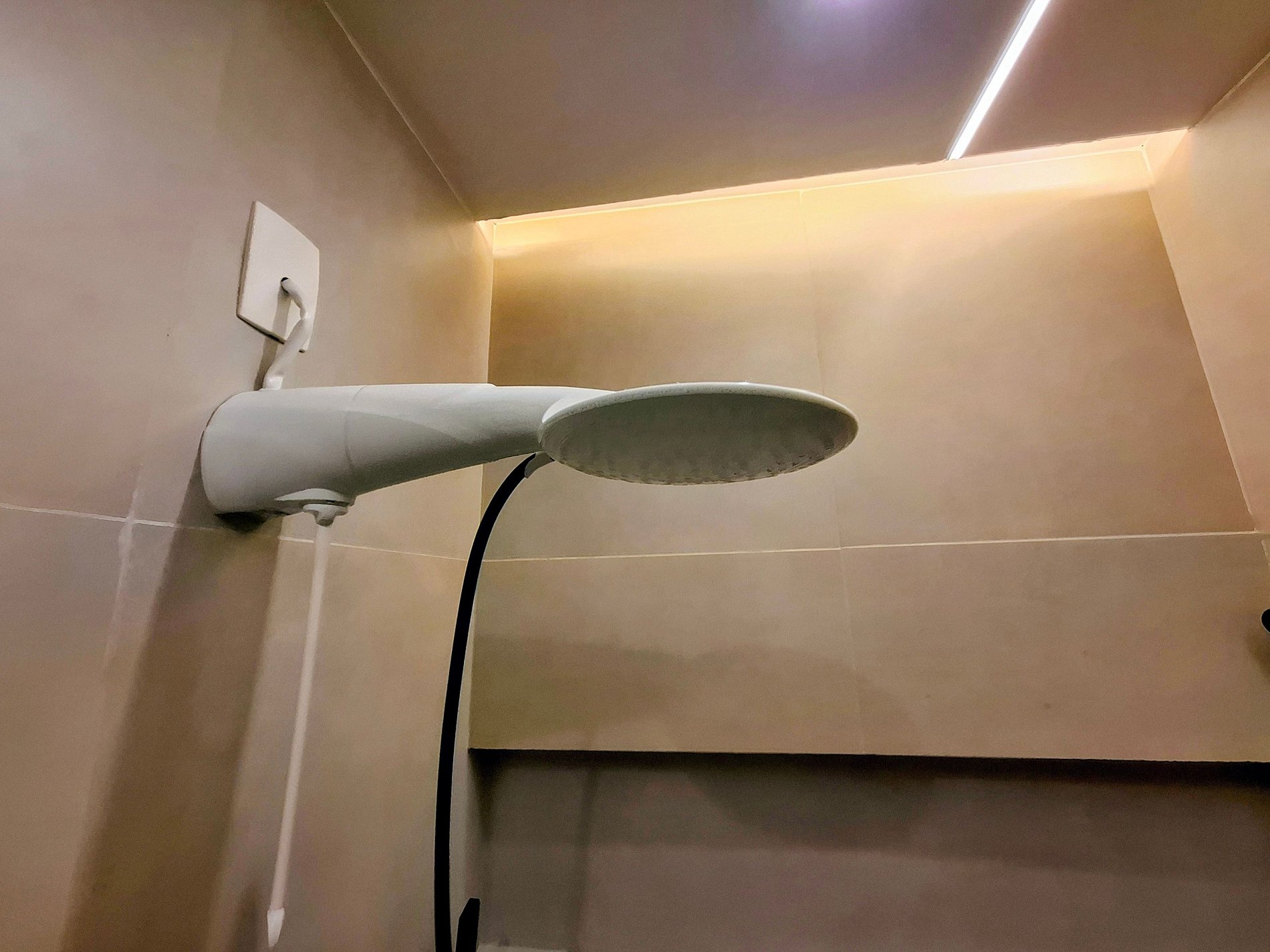 El baño moderno cuenta con una ducha caliente de alta presión.