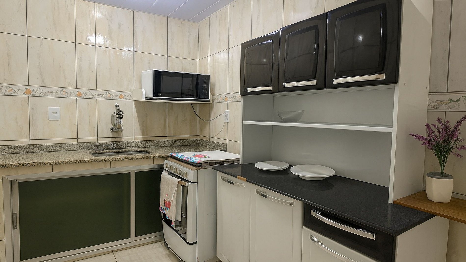 O espaço foi planejado para ser funcional e acolhedor. A sala se conecta à cozinha em conceito aberto, criando um ambiente integrado e leve. A cozinha possui todos os itens essenciais para preparar suas refeições com praticidade.