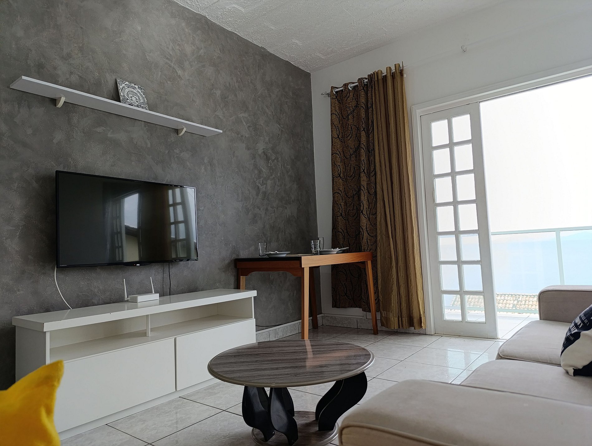 Nosso espaço foi pensado para oferecer o equilíbrio perfeito entre simplicidade e conforto. A sala se conecta de forma fluida à cozinha em estilo aberto, criando um ambiente acolhedor e funcional, ideal para momentos de descanso, refeições leves ou uma maratona de filmes.