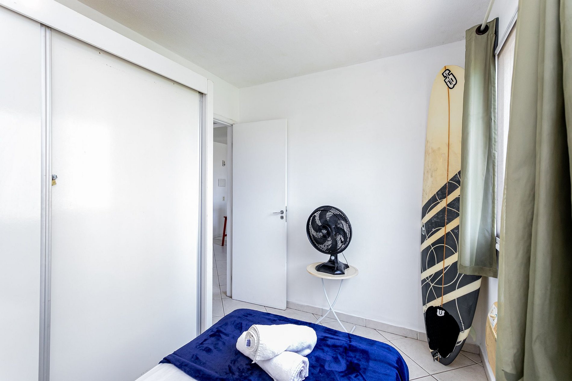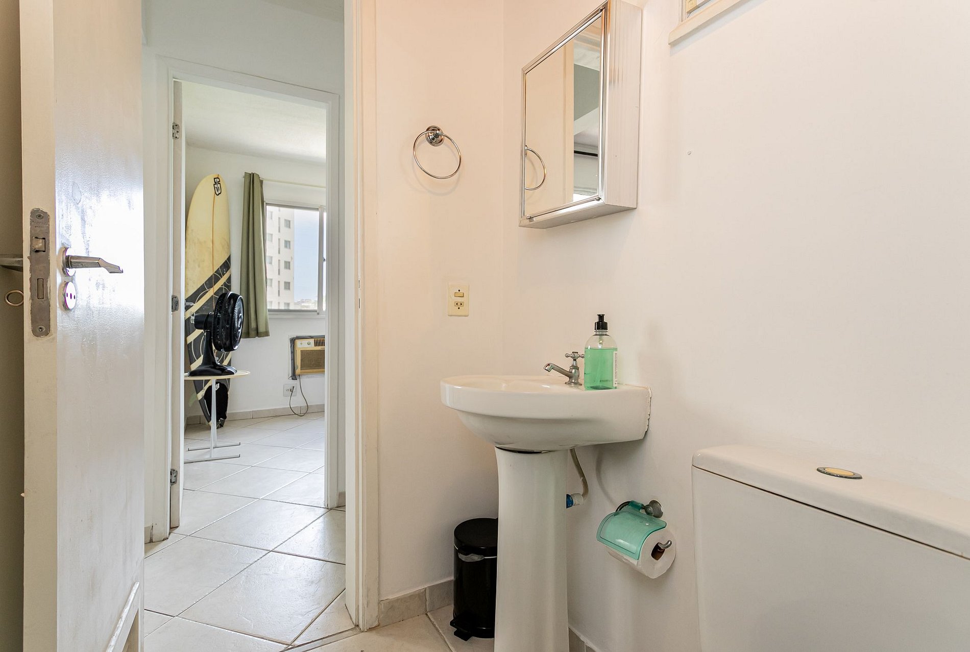 Seu apartamento prático conta com 2 quartos confortáveis, cada um com camas protegidas por cortinas que bloqueiam completamente a luz, oferecendo privacidade e conforto. O banheiro é completo com chuveiro, espelho, itens de higiene e água quente em qualquer hora. Toalhas limpas são fornecidas regularmente.