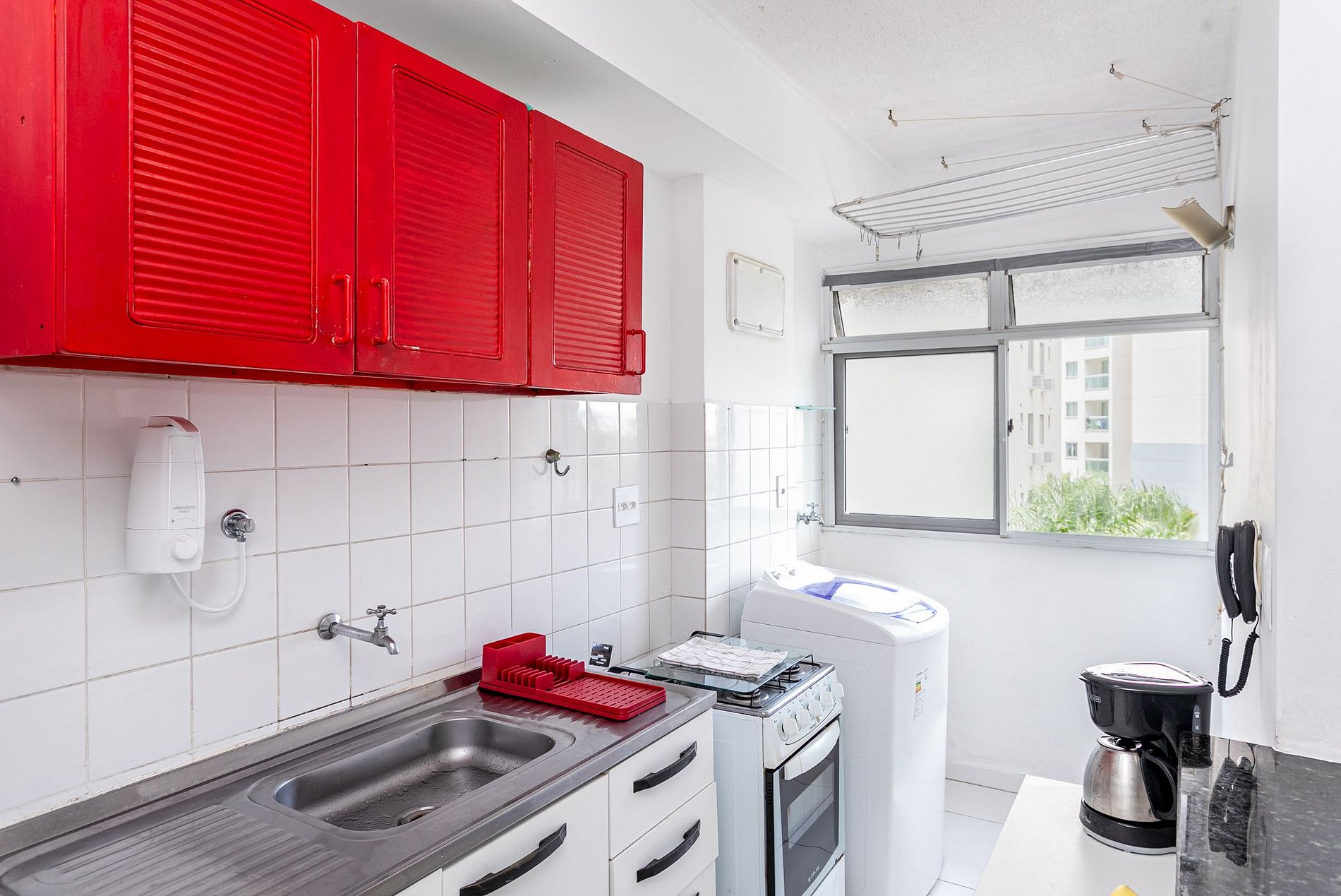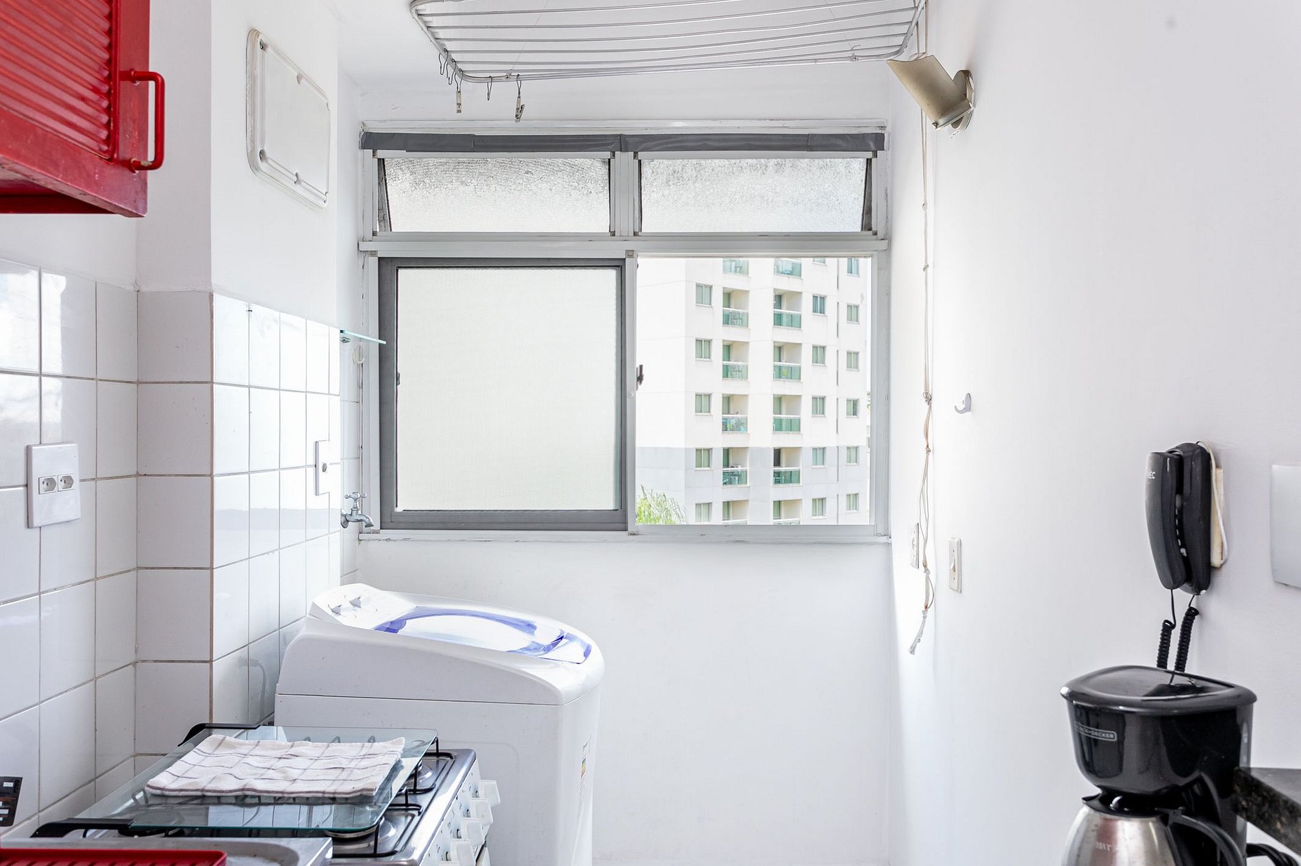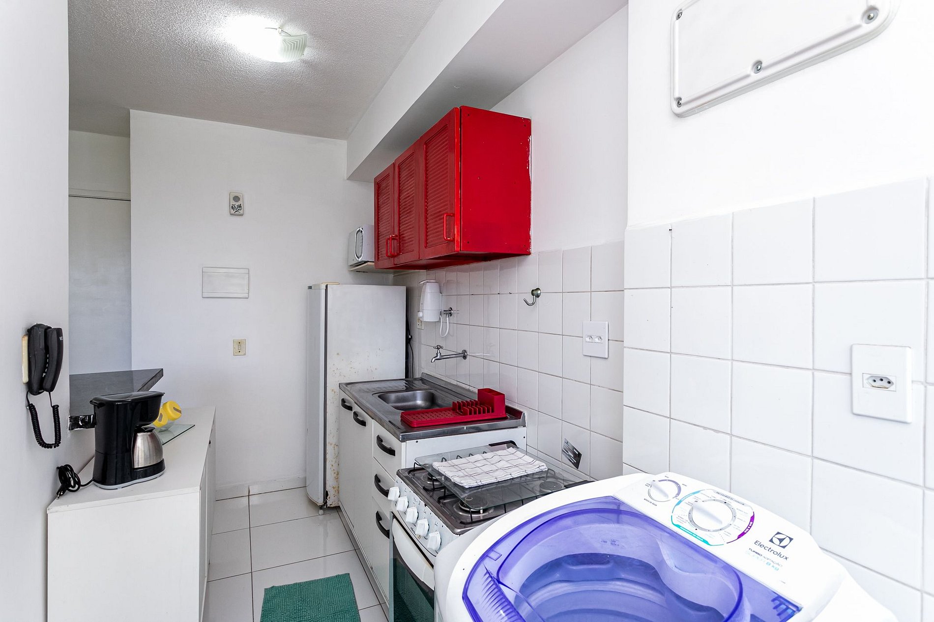 Máquina de lavar roupa oferece praticidade para hospedagens mais longas.