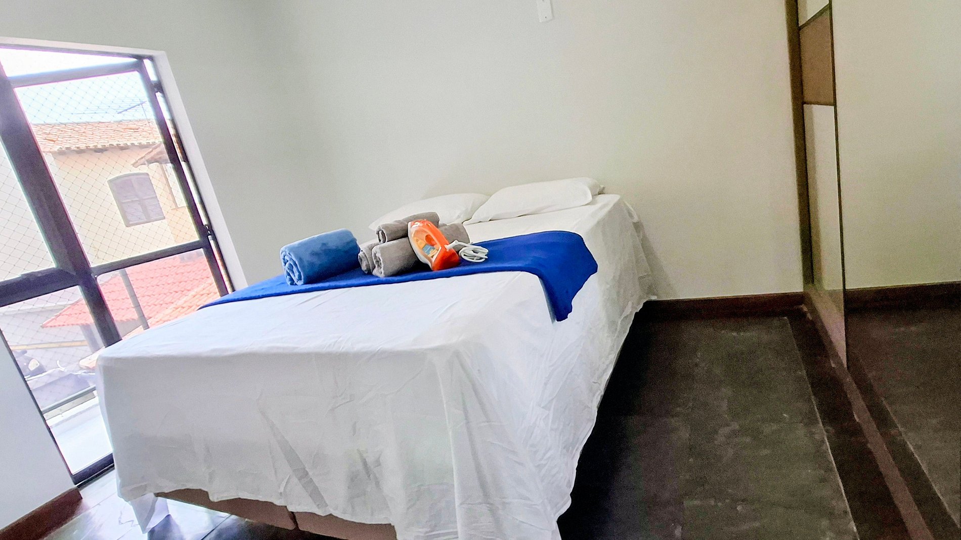 Nosso apartamento oferece noites de sono revigorantes em 3 quartos confortáveis, sendo 1 suíte, com camas bem distribuídas: 1 cama de casal, 2 camas de solteiro e 1 beliche. Roupas de cama e banho macias e cheirosas já estão inclusas para seu conforto.