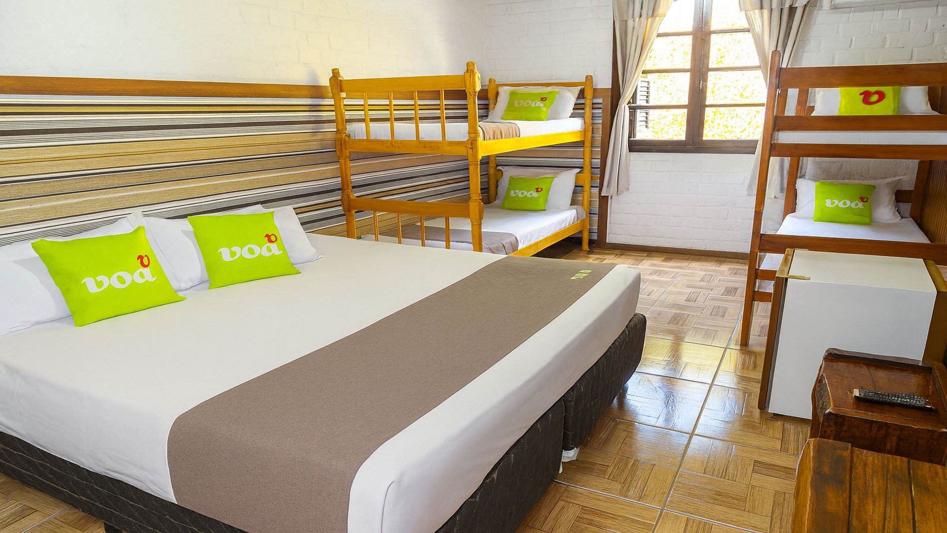 Acomoda até 6 pessoas, com 1 cama de casal e 2 beliches. O ambiente conta com banheiro privativo, roupas de cama e banho sempre limpas e cheirosas, Wi-Fi e uma atmosfera simples e agradável, perfeita para relaxar após um dia de passeios pela cidade.