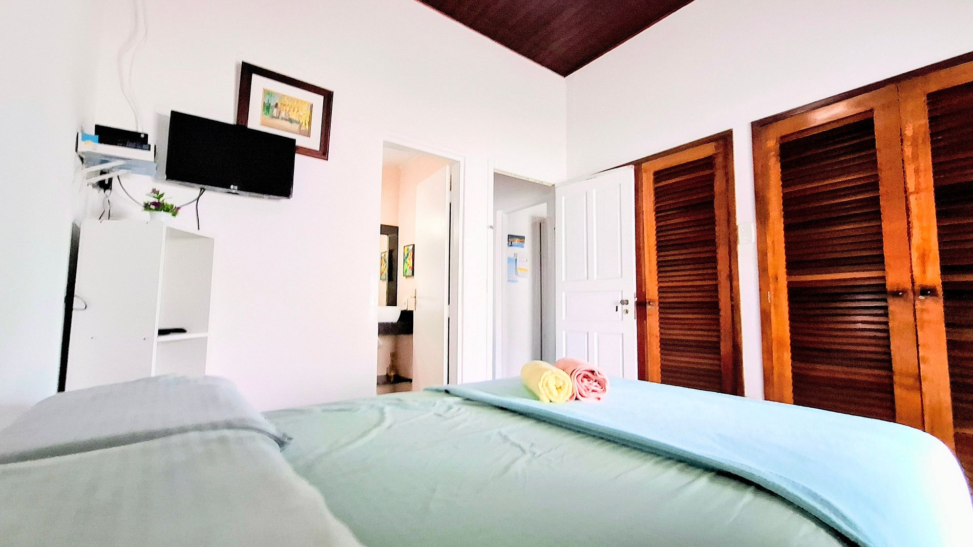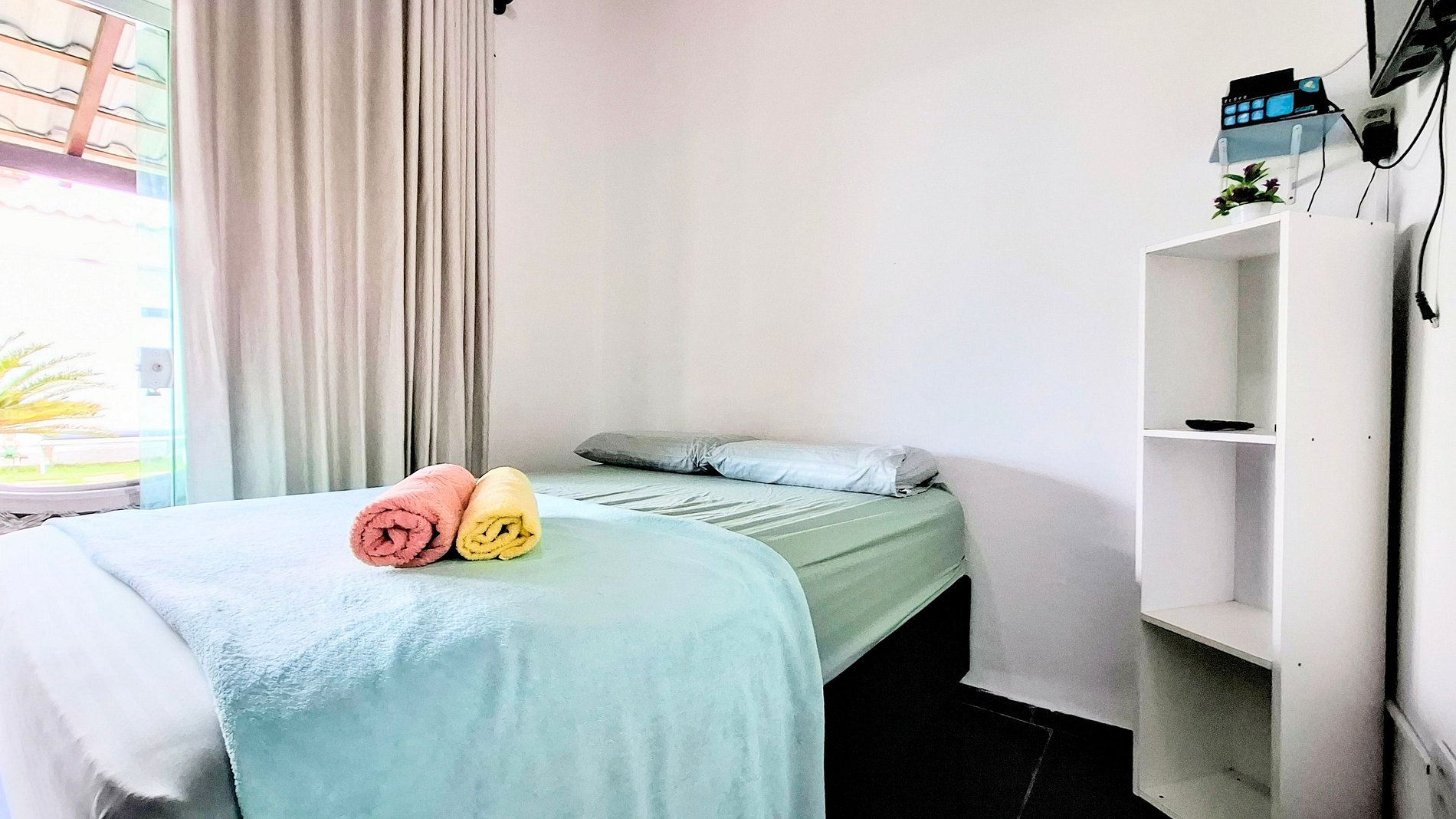 Nosso quarto é confortável e funcional — perfeito para quem busca aconchego e praticidade em Arraial do Cabo.