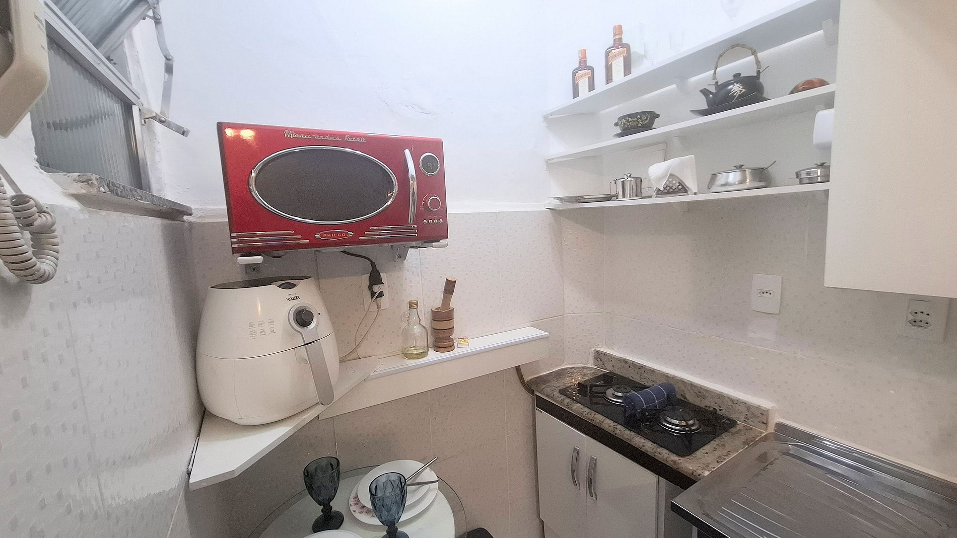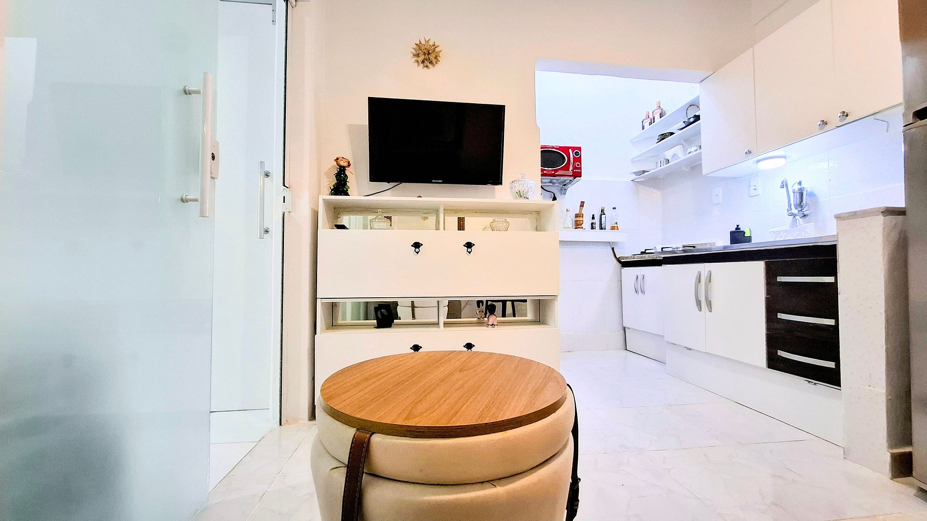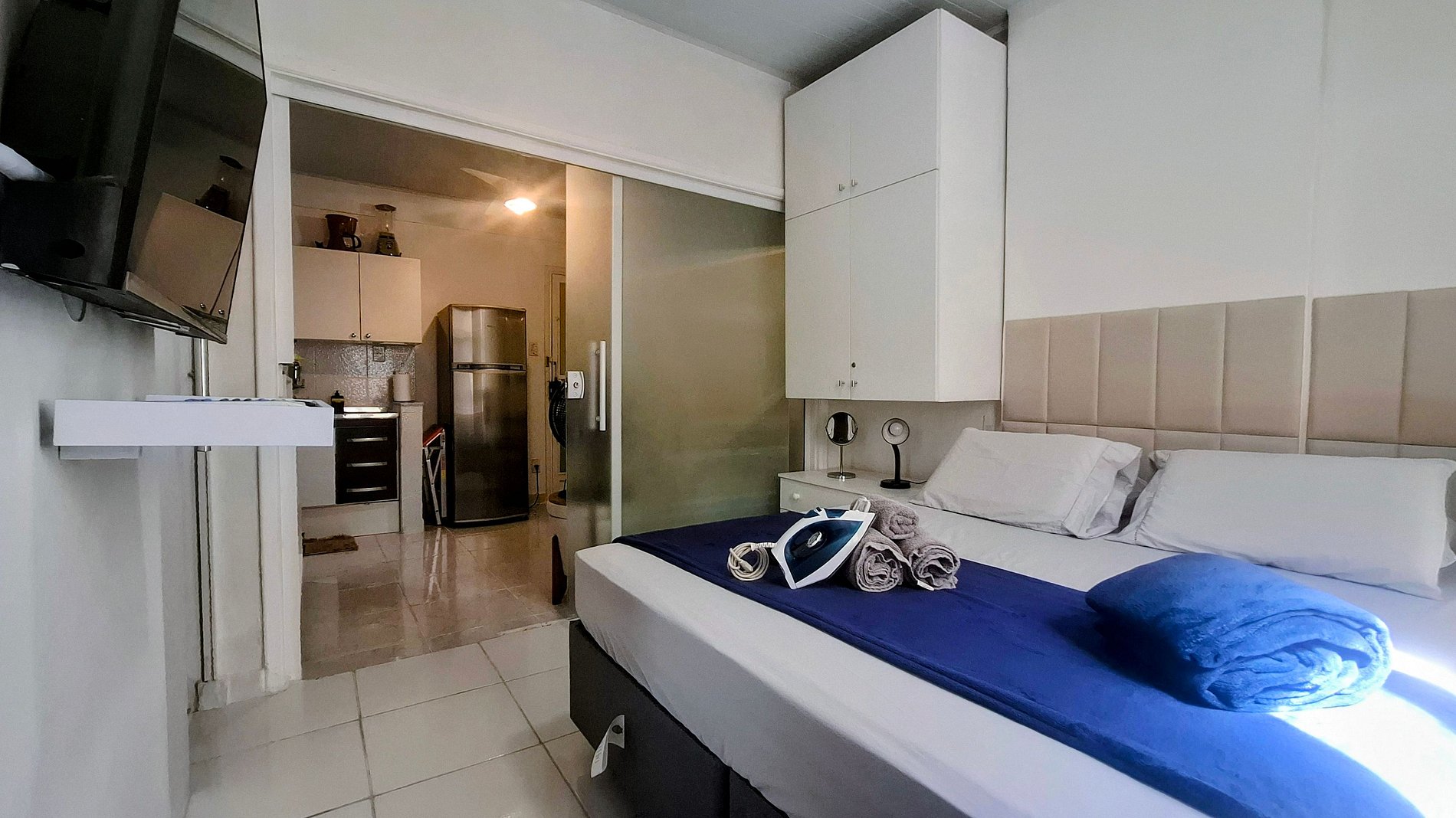 Aproveite os fins de tarde na Praia de Copacabana, a poucos minutos, ou desfrute da gastronomia vibrante que o bairro oferece. Este não é apenas um lugar para dormir. É um espaço pensado para pessoas que entendem que os detalhes fazem a diferença — desde a cama confortável até a cozinha completa que simplifica sua rotina.