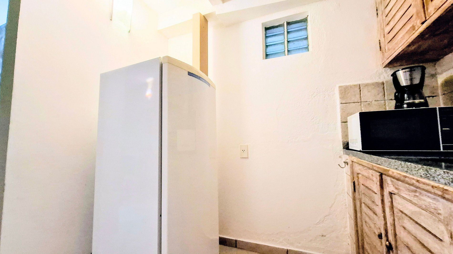 A cozinha é totalmente equipada com fogão, forno, geladeira, congelador, máquina lavar coletiva (solicite equipe para manuseio), Micro-ondas, liquidificador e torradeira. Ainda: louça, talheres e utensílios e garrafa de água.