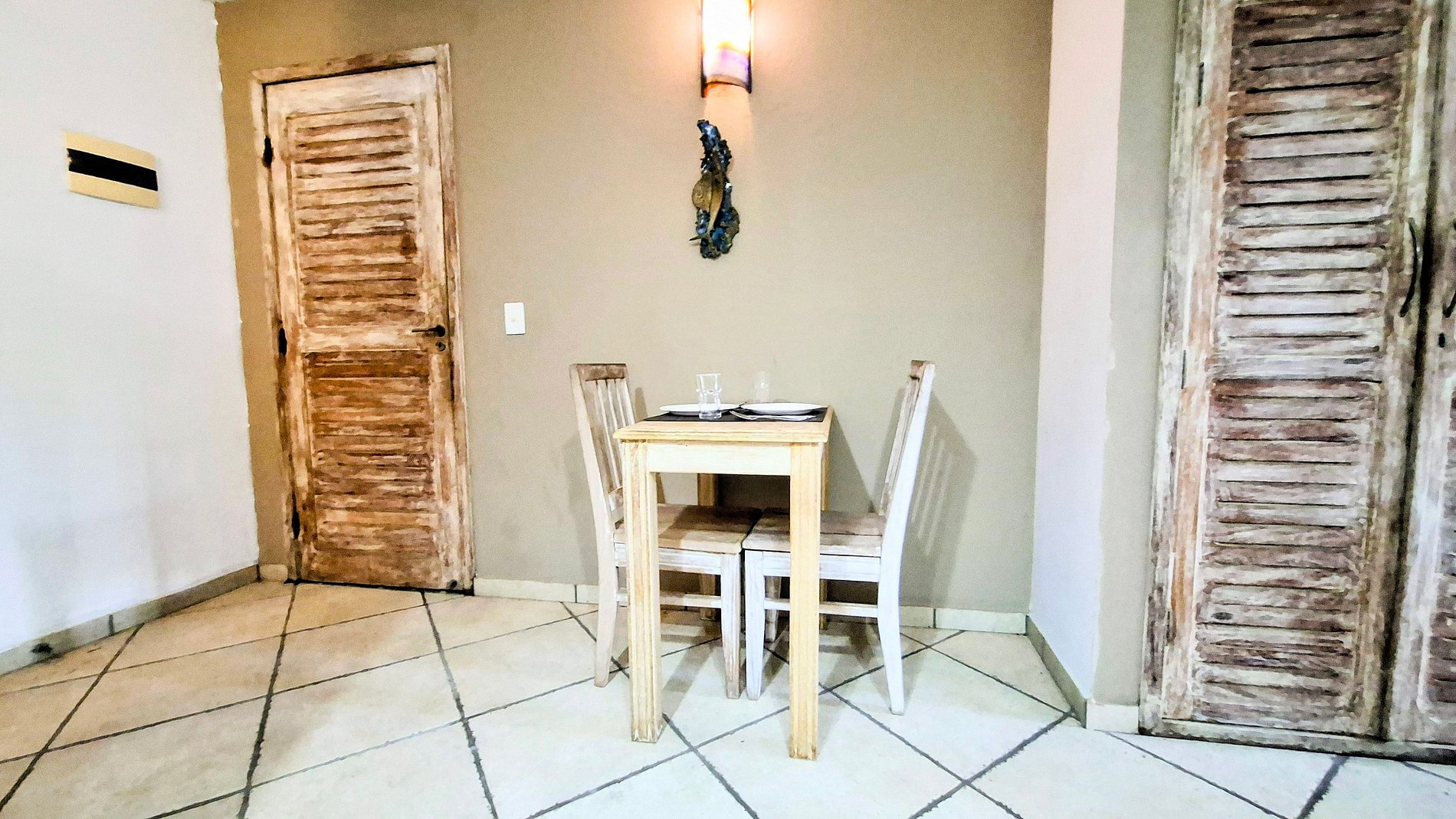A sala de estar acomoda um sofá-cama confortável que recebe facilmente mais um hóspede, um colchão de solteiro adicional oferece flexibilidade. Uma mesa de jantar permite compartilhar momentos com familiares e amigos.