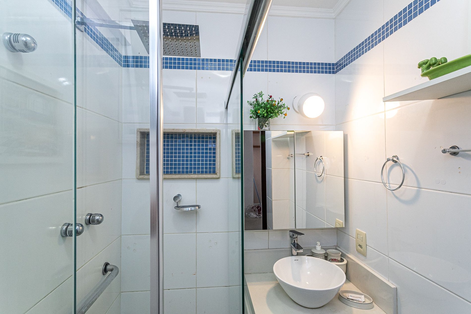 Acomodação para até 5 hóspedes, com 2 quartos e 1 banheiro com chuveiro a gás, Wi-Fi, Smart TV, micro-ondas, forno, fogão, secador, elevador e ar-condicionado nos quartos.