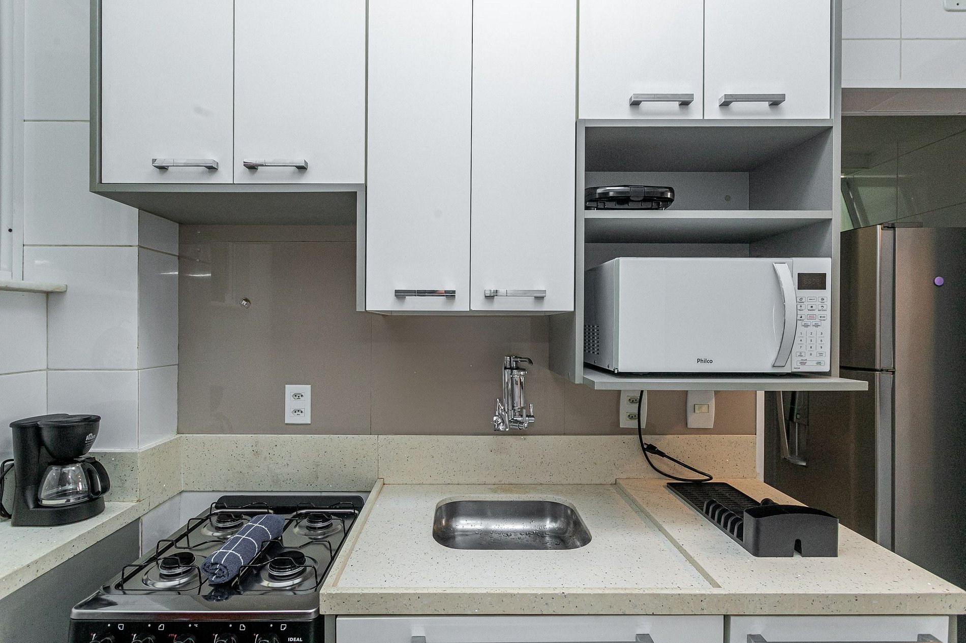 A sala conta com 1 sofá-cama.TV Smart com canais a cabo oferece entretenimento. O banheiro social é completo com chuveiro acessível sem degraus, itens básicos de higiene, tais como sabonete, toalha e papel higiênico, além de água quente em qualquer hora.A cozinha tem micro-ondas, fogão e forno para apoiar refeições do dia a dia.O prédio possui elevador.