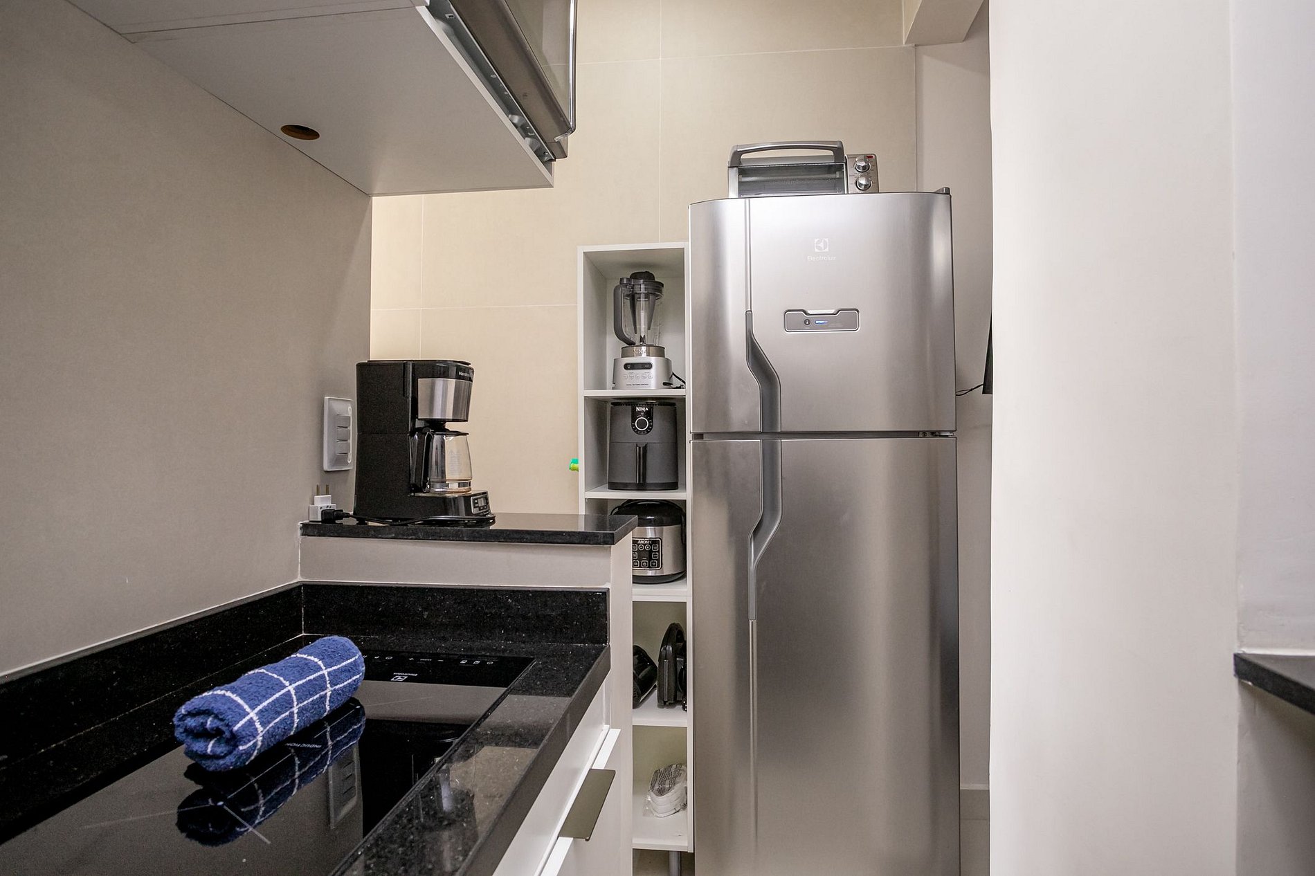 O apartamento acomoda até 4 hóspedes, com 1 quarto e sofá-cama na sala, com ar-condicionado em todos os ambientes e entrada por fechadura eletrônica, trazendo praticidade para sua chegada. Nossa disponibilidade funciona 7 dias por semana; berço e cadeiras de praia são grátis mediante aviso, e há transfer back para reservas de 5 dias ou mais. Crianças são bem-vindas e temos berço para bebês! Pets são bem-vindos.