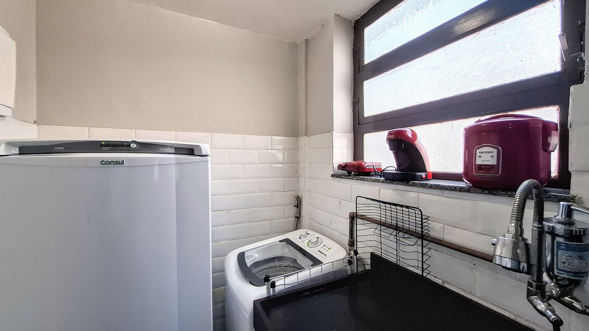 2) Cozinha completa : máquina de café espresso, sanduicheira, micro-ondas e itens gerais de cozinha;