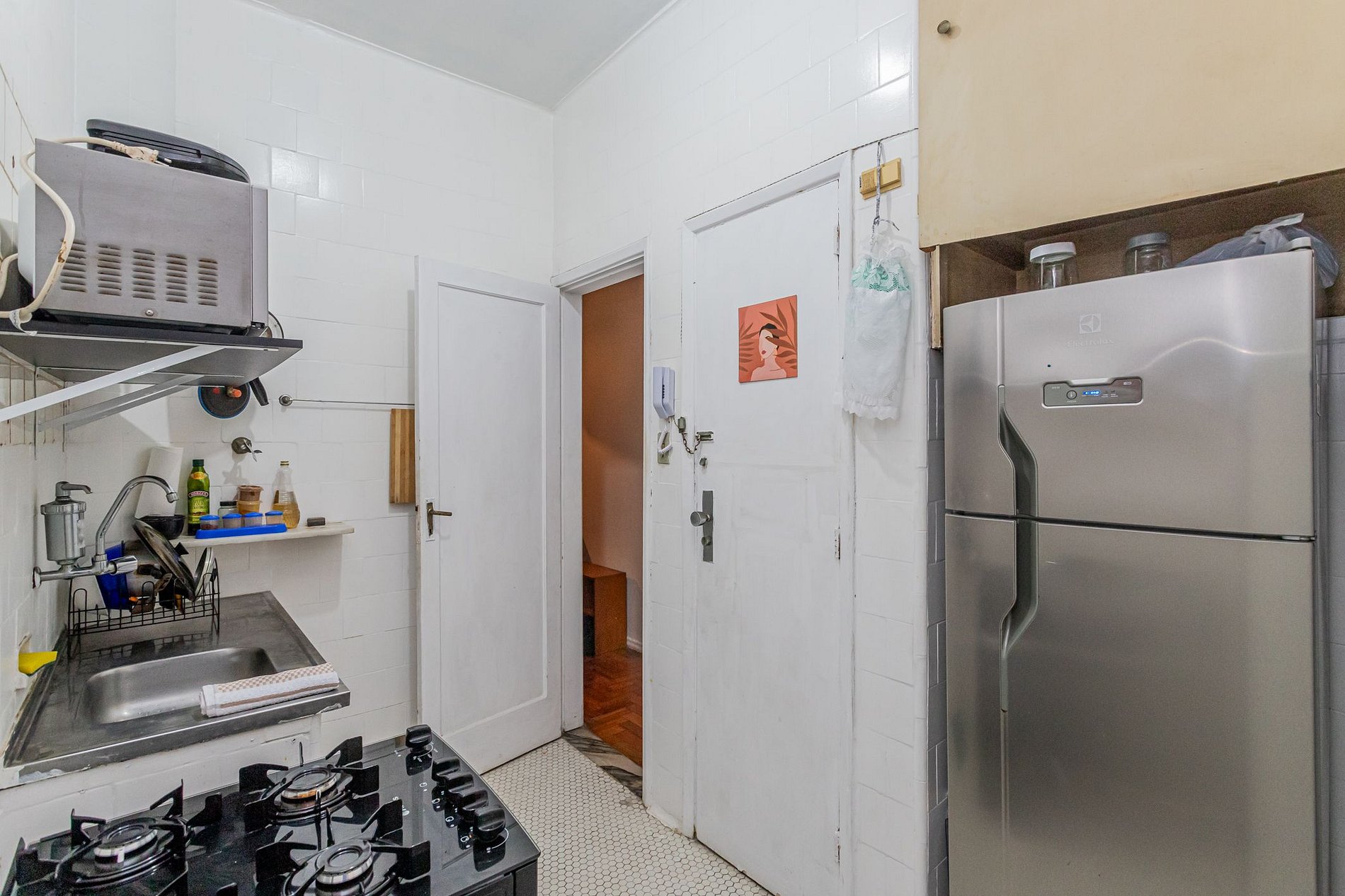 Equipada com fogão, forno, geladeira, freezer, máquina de lavar, Micro-ondas, liquidificador e torradeira. Ainda: louça, talheres e utensílios básicos e garrafa de água.O condomínio oferece recepção 24 horas por dia e elevador para acesso facilitado ao seu refúgio histórico.O espaço é silencioso, com horário de silêncio rigoroso das 20h até 8h. A ventilação natural é o grande destaque, com ar fresco circulando por todo o pé-direito de 3 metros. Decoração vintage que celebra a funcionalidade e o charme do Rio clássico.