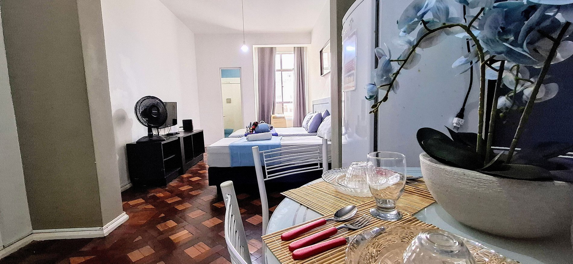 Descubra a magia de Copacabana a apenas alguns minutinhos da praia mais famosa do Brasil! Nosso apartamento completo te espera com ar-condicionado, cozinha equipada e um quarto confortável para até 3 pessoas, além de Wi-Fi.