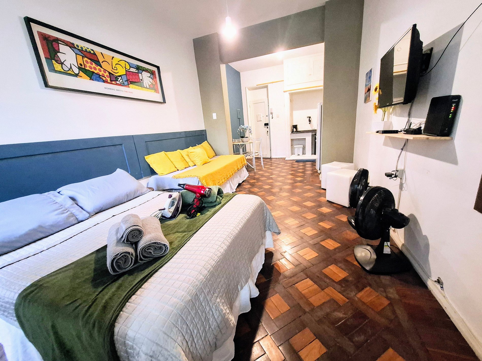A localização do apartamento é maravilhosa, tem fácil acesso a restaurantes, farmácias e fica a 7 minutos da praia de Copacabana. Os porteiros são bastante educados e solícitos. Porém, algumas coisas nos deixaram chateados sobre o apartamento: a televisão não funciona e o chuveiro não esquenta; não conseguimos acessar coisas básicas de limpeza como por ex um guardanapo para cozinha, pano de chão, rodo e esponja para louças (usamos uma toalha pessoal para limpar o chão). Acredito que por ser um apto prox a praia no qual a grande maioria dos inquilinos chegarão com areia da rua, seria um ponto positivo a disponibilização destes itens. Outra coisa que aconteceu por 2 vezes e não deveria é funcionárias da limpeza da Yes entrarem no apartamento quando estávamos lá, nos arrumando para os nossos afazeres; elas pediram desculpas e disseram não saber que já/ainda estávamos no apartamento, falta de comunicação entre eles que nos deixou bastante desconfortáveis.