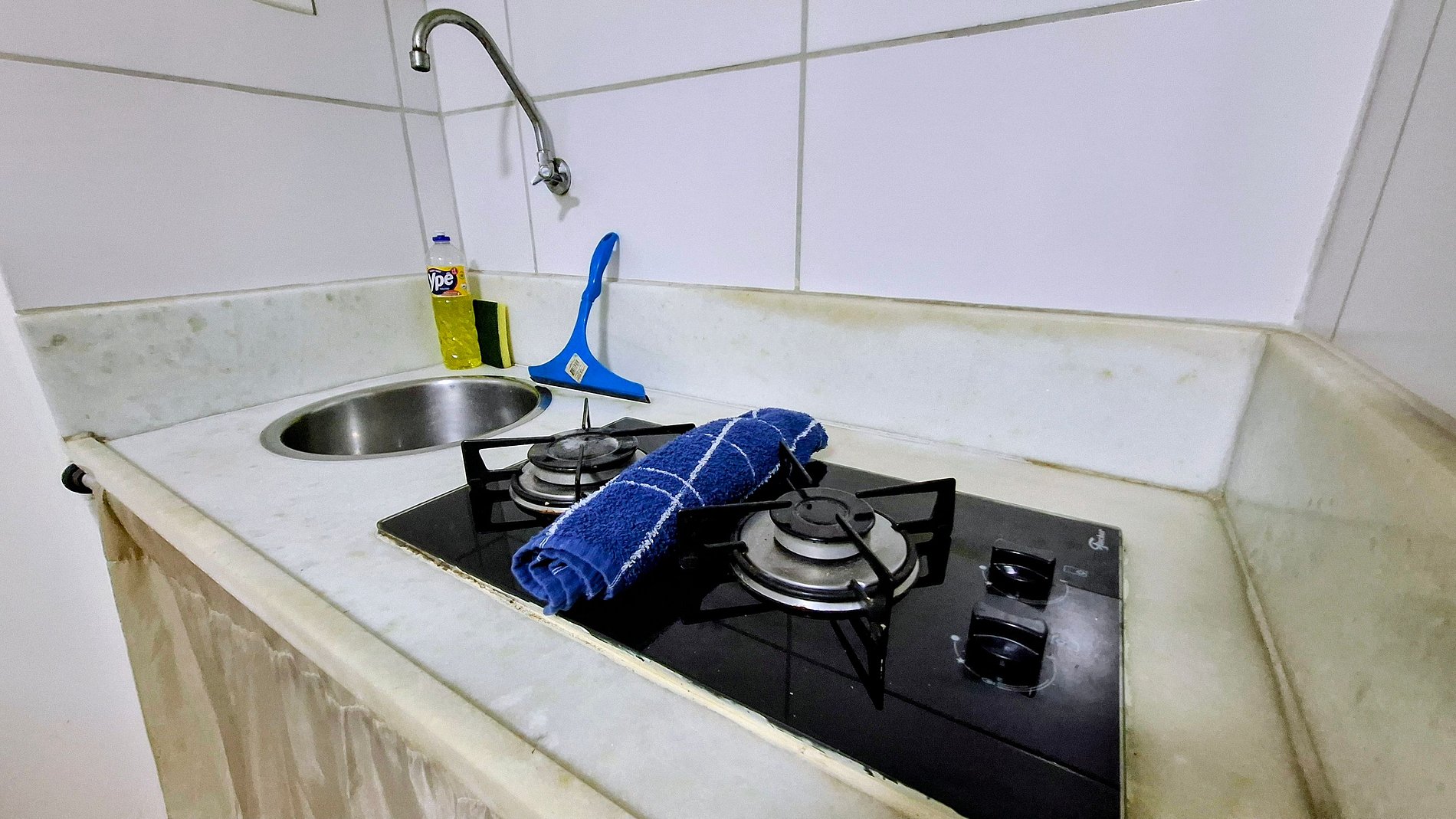Precisa de reparos. O piso do lado direito da cama de casal está solto e a pia está vazando água pelo lado do fogão inundando a plateleira do armário e o piso .