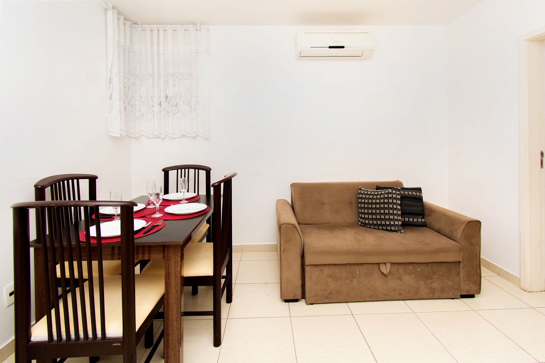 Apartamento completo: Ar-condicionado, cozinha equipada, 2 quartos, 5 pessoas, Wi-Fi, portaria 24h. Comércio e atrativos locais para todos os gostos!