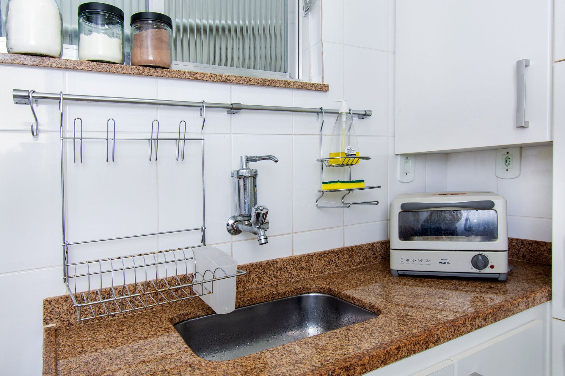 Fechadura eletrônica, Cama de casal, Sofá-Cama casal, roupas de cama e banho, Armarios, ar-condicionado, TV, cortina com blackout, ferro de passar, secador de cabelo, sofá, cozinha completa, Ducha higiênica, Água quente a gás.