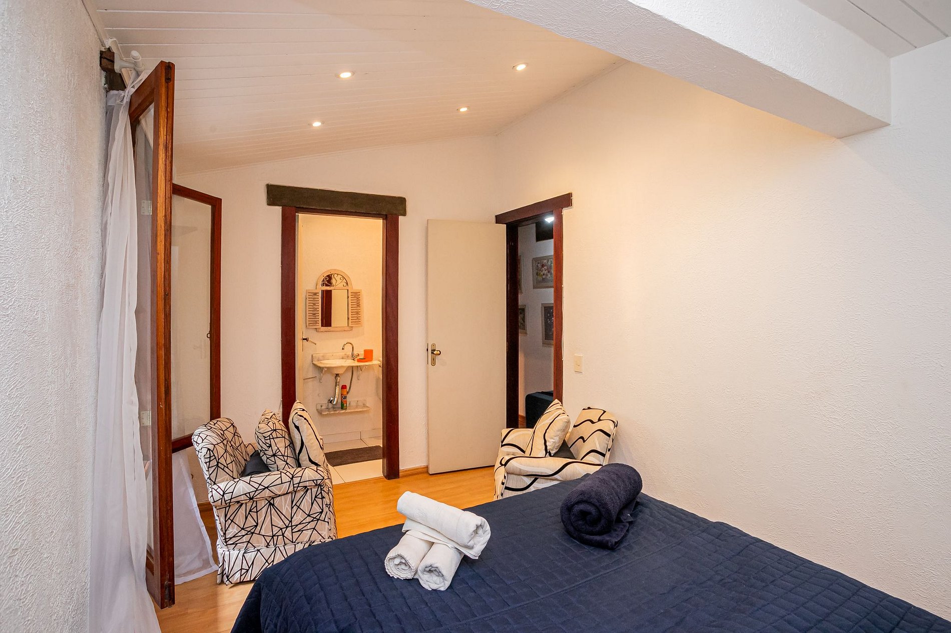 Pensando no seu conforto, oferecemos roupas de cama e banho já incluídas, além de Wi-Fi e ambiente silencioso para quem precisa trabalhar com tranquilidade. Para estadias acima de 7 dias, deixamos 2 conjuntos de cama e banho por pessoa, garantindo uma troca intermediária sem preocupações.