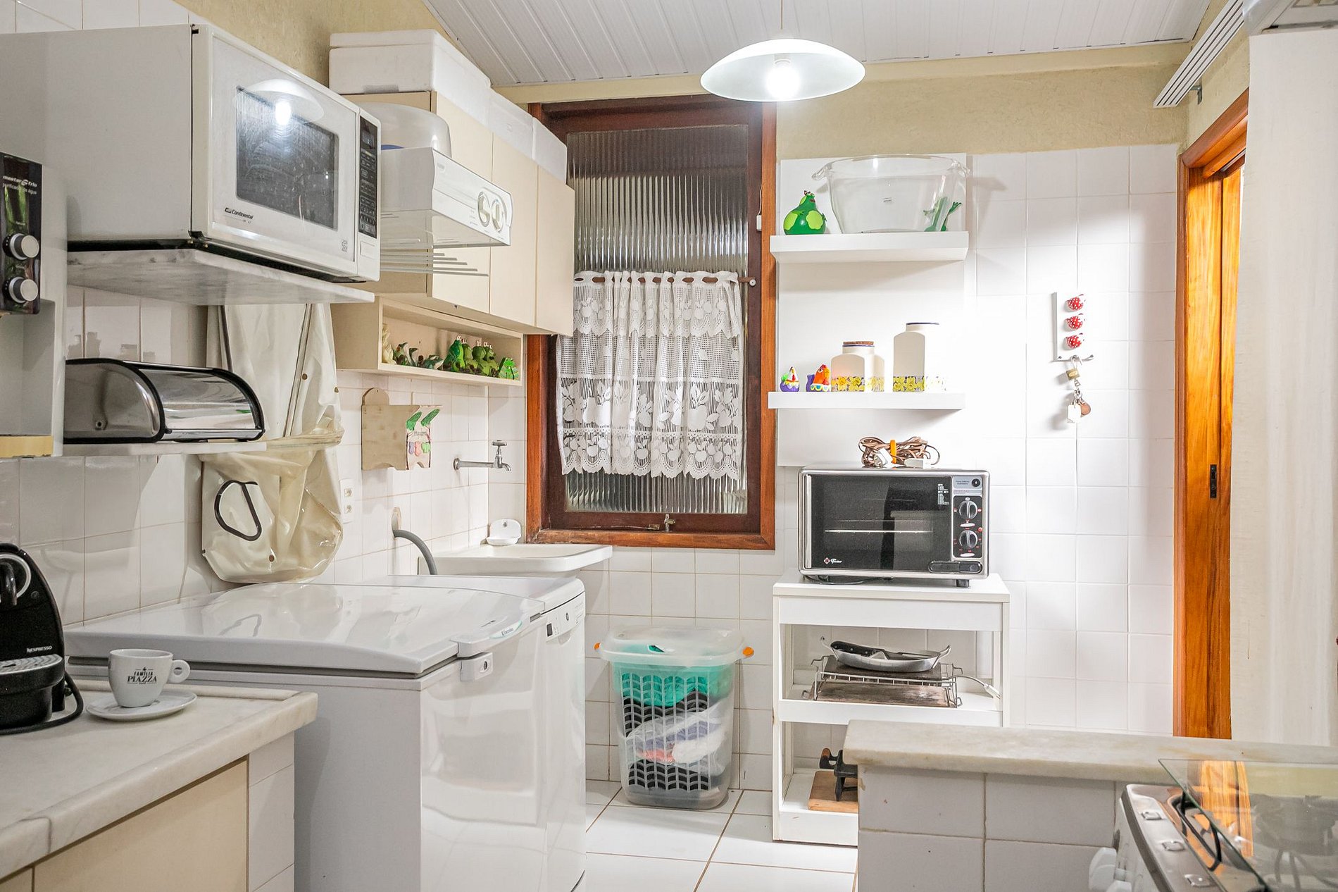 A cozinha também é completa e equipada para quem gosta de cozinhar com praticidade: geladeira, fogão, micro-ondas, cafeteira, filtro de água, freezer horizontal e até lava-louças. Todos os utensílios estão disponíveis para que você se sinta à vontade — como num lar com vista para a serra.