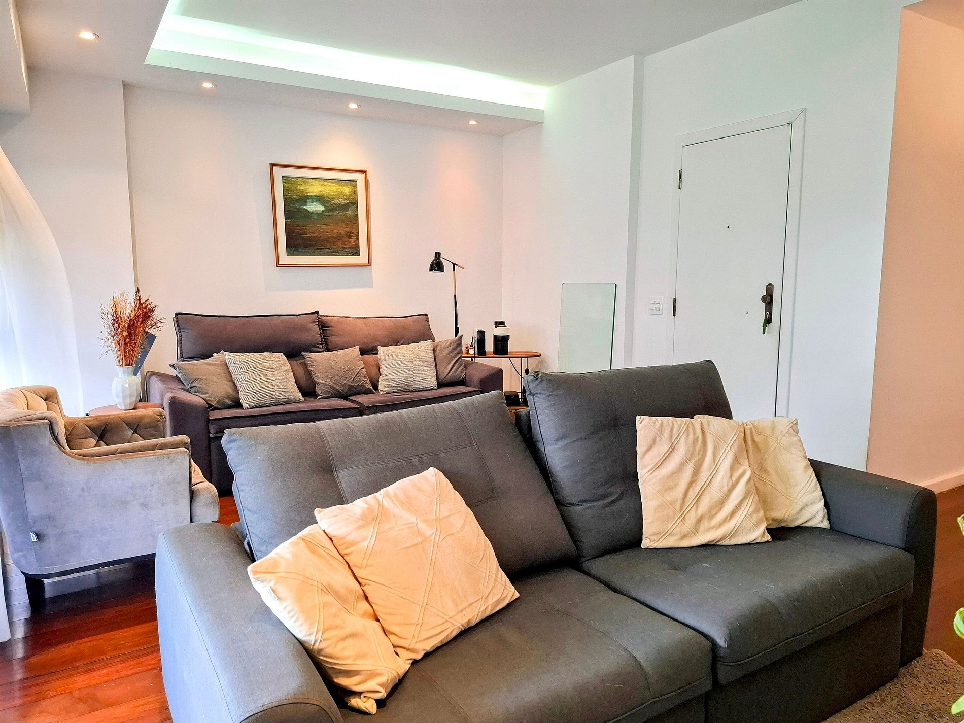 Área de estar com sofá/cadeira