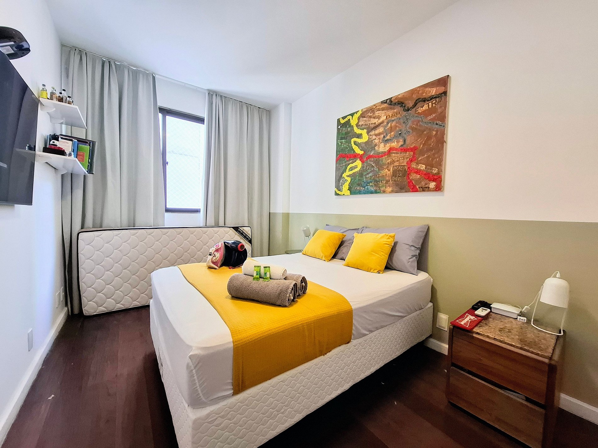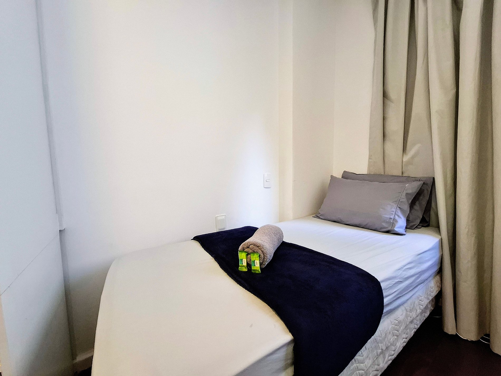Na saída, o check-out é até meio-dia. Basta desligar os aparelhos, fechar a porta e pronto! Nossa camareira chega logo em seguida para preparar tudo para o próximo hóspede. Se precisar de late check-out, fale com a gente antes e, se possível, faremos acontecer.